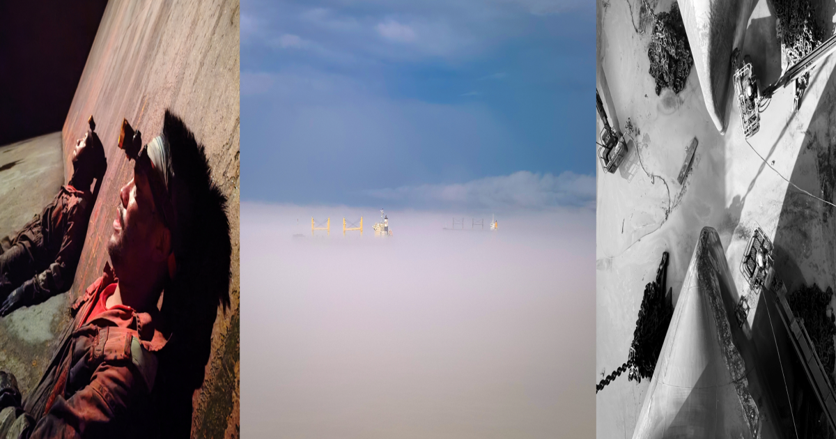 The first prize of £1,000 goes to Jericho P. Mifania for his photo ‘Echoing Sigh-lence of Relief inside Cargo Hold’– in his own words ‘a tableau of weary resilience after an arduous hours working. The sea may seem majestically infinite, but our sights are often confined to these walls, resolutely enduring the relentless waves of fatigue, the gnawing loneliness, and the constant pressure to deliver. It is in moments like this that we realize we are bound together by a shared sigh of relief echoing the unspoken battles we keep.’